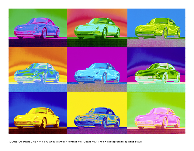 Dieses Motiv bekam den Namen „Hommage to Andy Warhol“ und entstand 1993 im Rahmen des Shootings für die Modelleinführung des Modells 993, der 911er nach dem Porsche 964, der letzte mit reiner Luftkühlung. Als Basis dienste eine Studioaufnahme auf Diafilm die digitalisiert wurde und auf einem Bildbearbeitungssystem auf möglichst viele Farbumkehreffekte bearbeitet wurde. Die schönsten Fahrzeugfarben wurden mit den besten Hintergrundfarben kombiniert und zu einem neuen Bild zusammengesetzt.