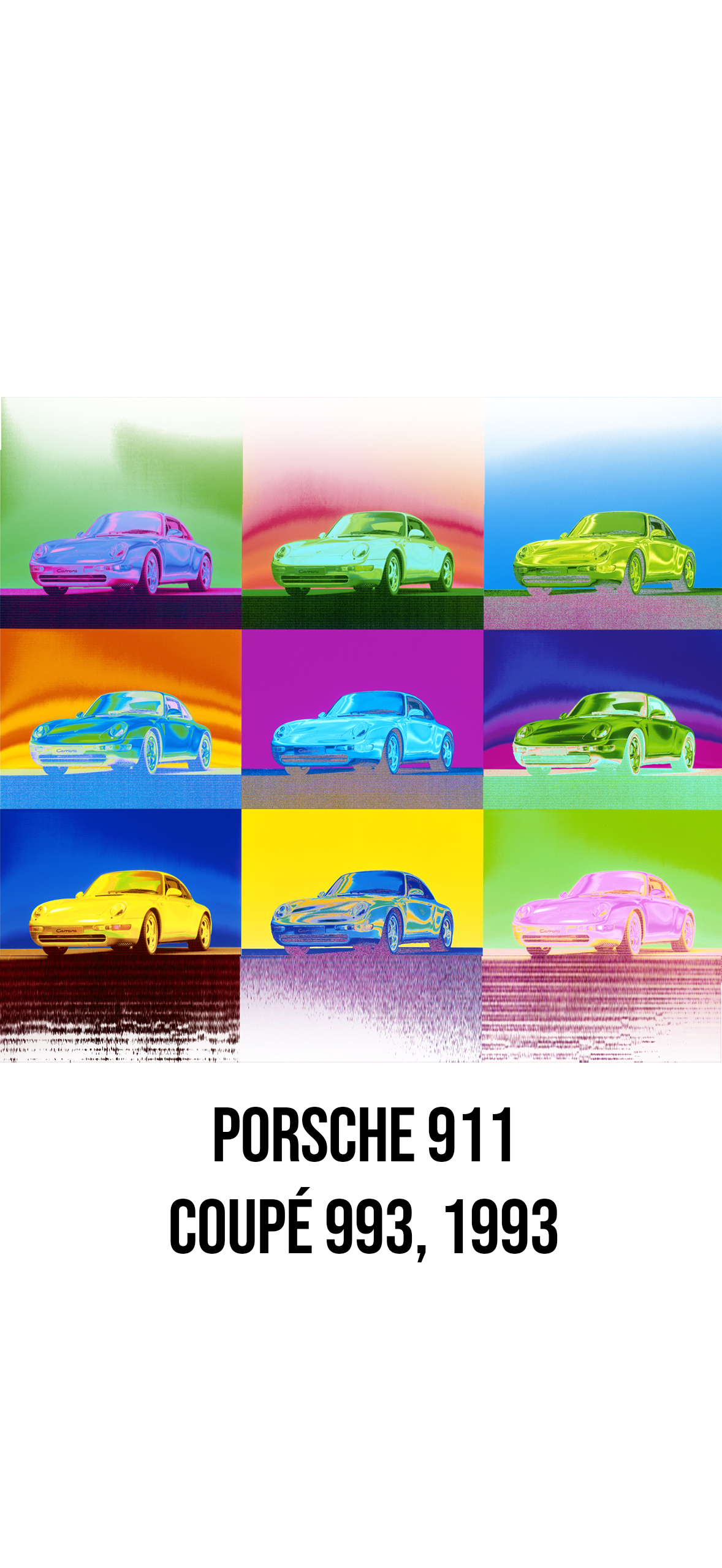 Dieses Motiv bekam den Namen „Hommage to Andy Warhol“ und entstand 1993 im Rahmen des Shootings für die Modelleinführung des Modells 993, der 911er nach dem Porsche 964, der letzte mit reiner Luftkühlung. Als Basis dienste eine Studioaufnahme auf Diafilm die digitalisiert wurde und auf einem Bildbearbeitungssystem auf möglichst viele Farbumkehreffekte bearbeitet wurde. Die schönsten Fahrzeugfarben wurden mit den besten Hintergrundfarben kombiniert und zu einem neuen Bild zusammengesetzt.