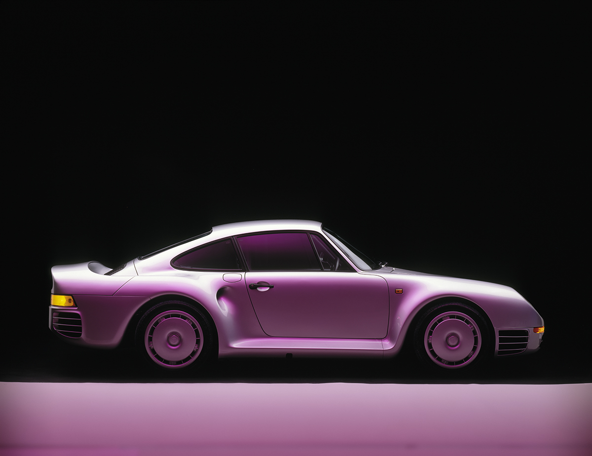 Porsche Studie Gruppe B, IAA 1982. Im violetten Licht entfaltet sich die ganze Magie einer automobilen Vision: Die Gruppe-B-Studie war der Vorbote des legendären 959 – radikal, futuristisch, fast schon außerirdisch. Ein Konzept, das Motorsportträume weckte und den Mythos Porsche auf eine neue Ebene hob.